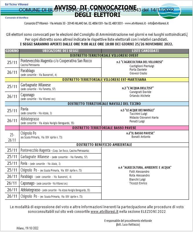 TRASMISSIONE NOTA PROT. N. 10474 DEL 14.11.2022 - CONVOCAZIONE ELEZIONI CONSORTILI GRUPPO 5 - VARIAZIONE RICHIESTA PUBBLICAZIONE ALBO PRETORIO