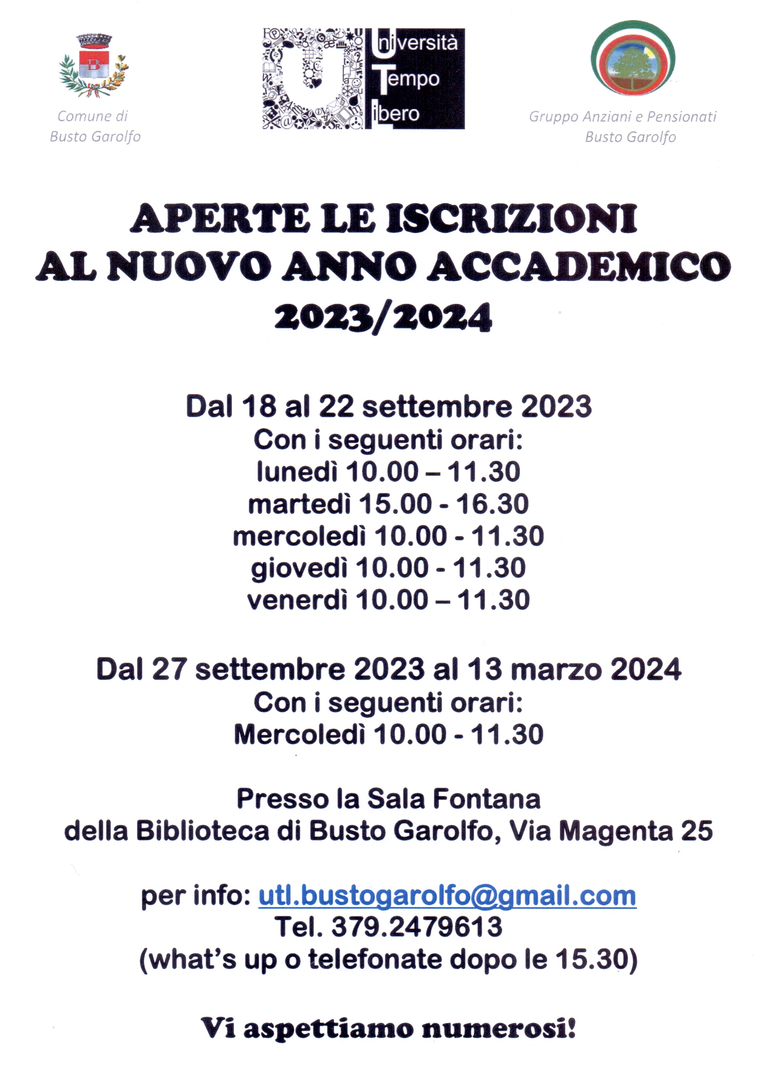 Per informazioni: utl.bustogarolfo@gmail.com - tel. 3792479613.