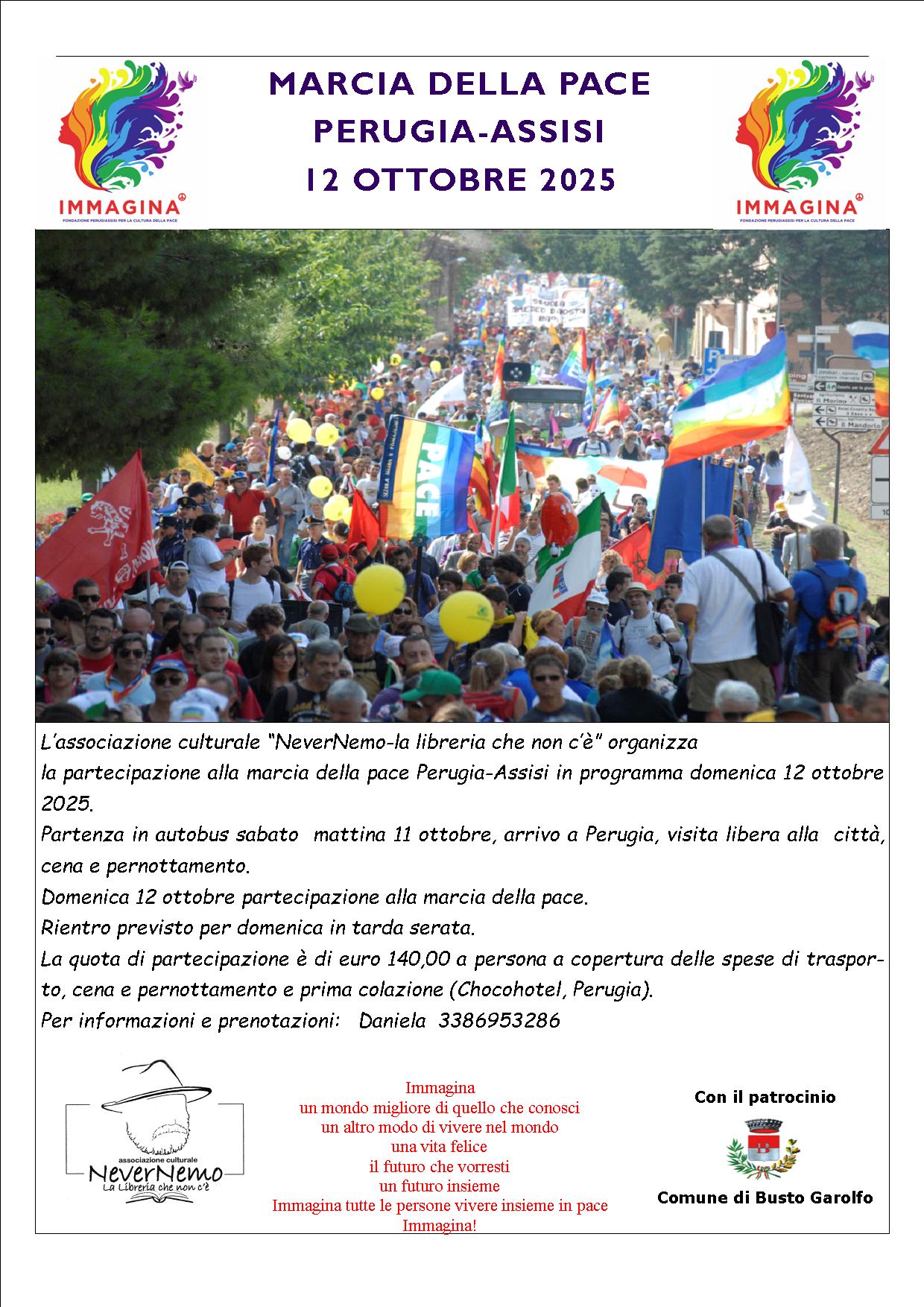 L'associazione culturale NeverNemo - la libreria che non c'è" organizza la partecipazione alla marcia della pace Perugia - Assisi in programma domenica 12 ottobre 2025.