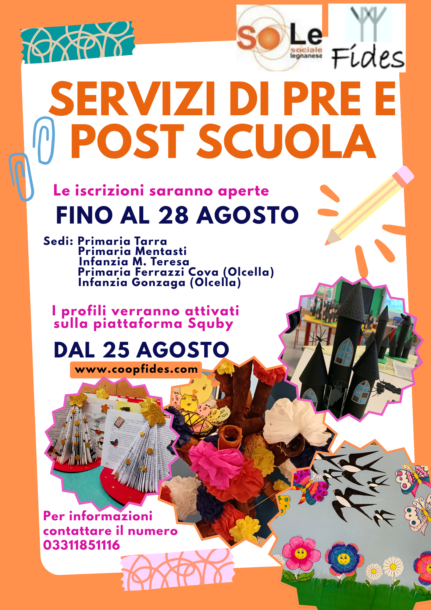 Per iscrizioni: www.coopfides.com - sezione iscrizioni - Pre e Post scuola selezionare il Comune di Busto Garolfo Per Informazioni telefonare al n. 03311851116