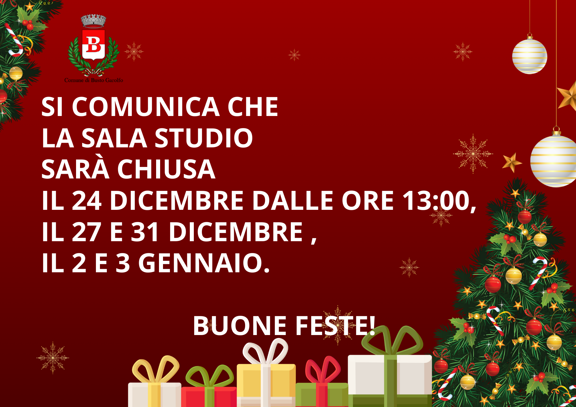 L'aula Studi resterà chiusa nei seguenti giorni: