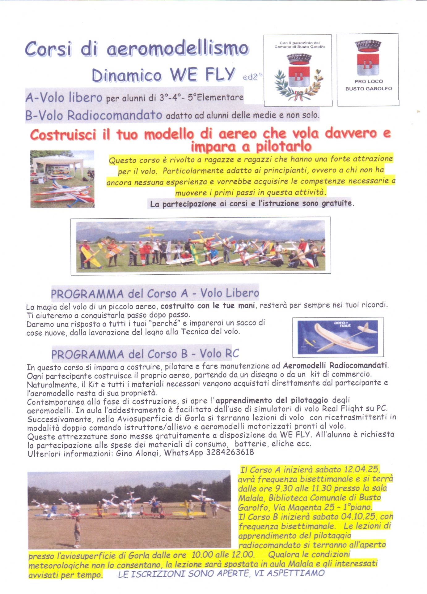 L'Associazione Pro Loco con il patrocinio del Comune di Busto Garolfo organizza corsi di aeromodellismo dinamico e volo radiocomandato "Progetto We Fly". Per informazioni tel. 3284263618.