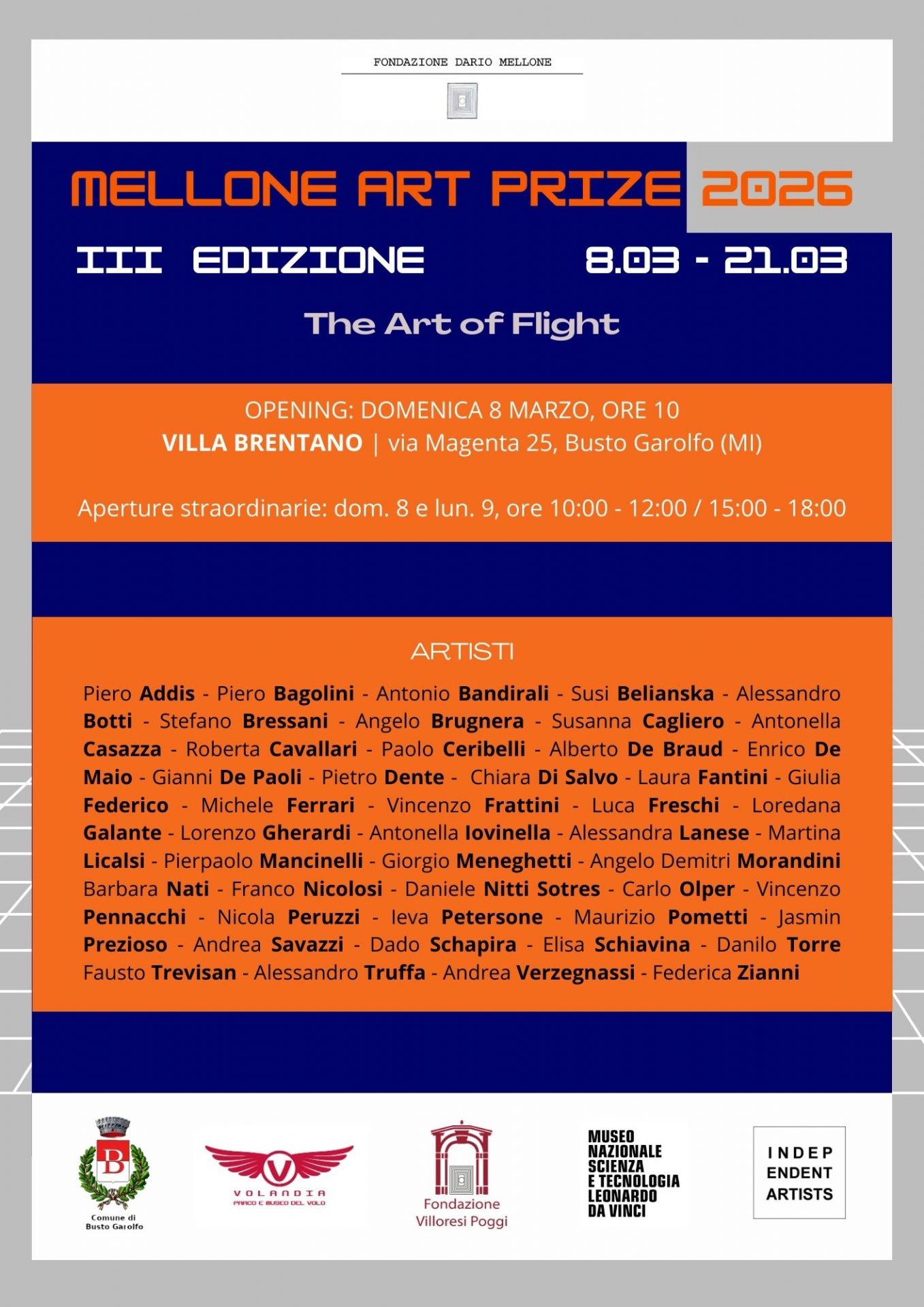 Domenica 8 marzo alle ore 10.00 apertura della mostra "The Art of Flight" degli artisti selezionati per la terza edizione del Mellone Art Prize, presso lo Spazio Espositivo di Villa Brentano.