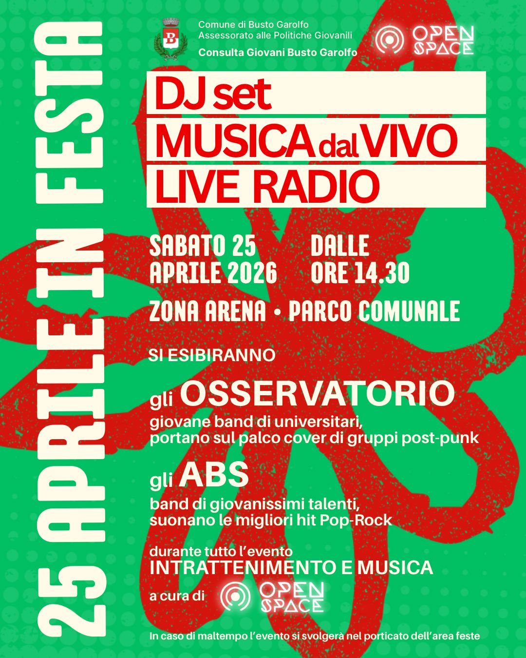 DJ set musica dal vivo e live radio dalle 14.30 presso l'area feste del Parco Falcone Borsellino
