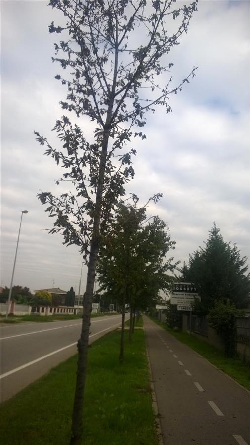 Si segnala che la pianta di "ciliegio selvatico" posta lungo la via Europa, la decima dall'incrocio con via Olcella, è seccata perdendo innanzi tempo le foglie. So che l'autunno è la stagione durante la quale le piante cedue perdono le foglie, ma le altre dello stesso filare hanno ancora una chioma folta.