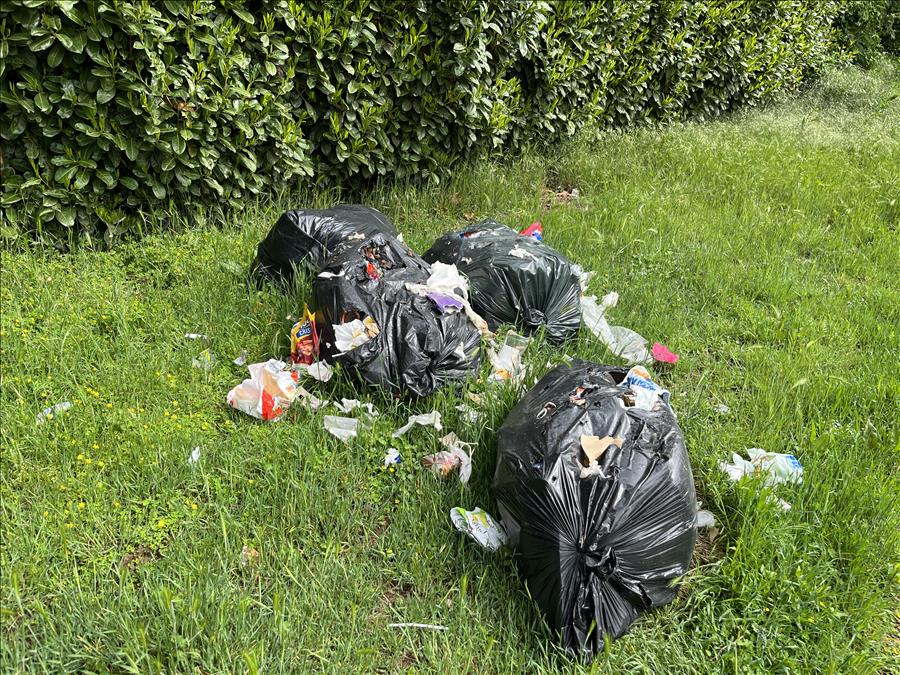 Sacchi neri abbandonati con materiale sparso in via per Parabiago (dietro distributore Repsol) non lontano dall’ingresso del Parco del Roccolo.