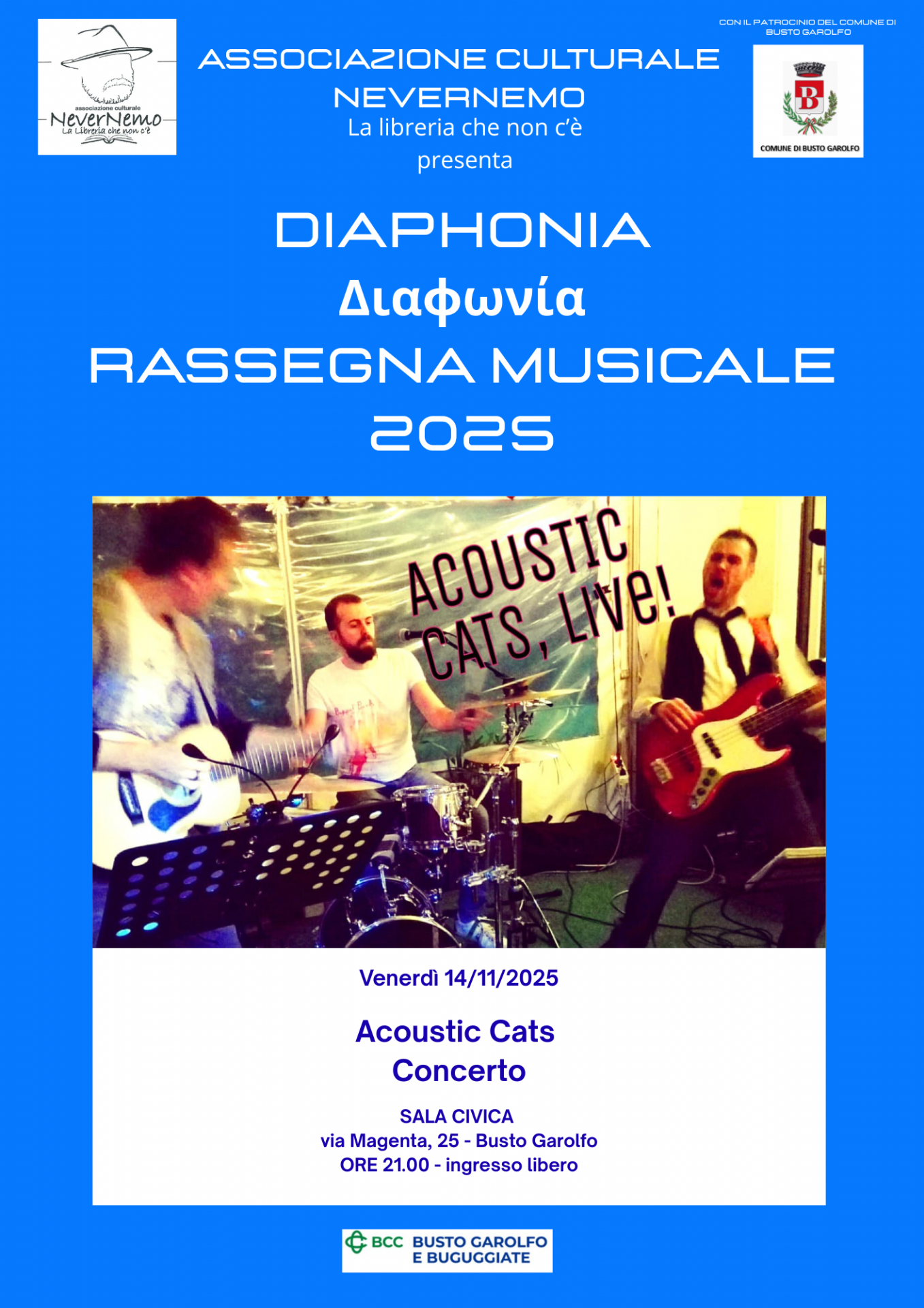 L'Associazione culturale NeverNemo La Libreria che non c'è, con il patrocinio del Comune di Busto Garolfo, organizza la rassegna musicale Diaphonia.