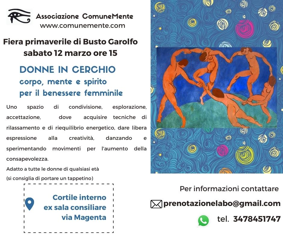 - ore 15:00 Laboratorio esperienziale "Donne in cerchio. Corpo, mente e spirito per il benessere femminile", presso il cortile interno ex sala consiliare, via Magenta n. 25. Info e prenotazioni Associazione ComuneMente: 347.8451747 - prenotazionelabo@gmail.com ;