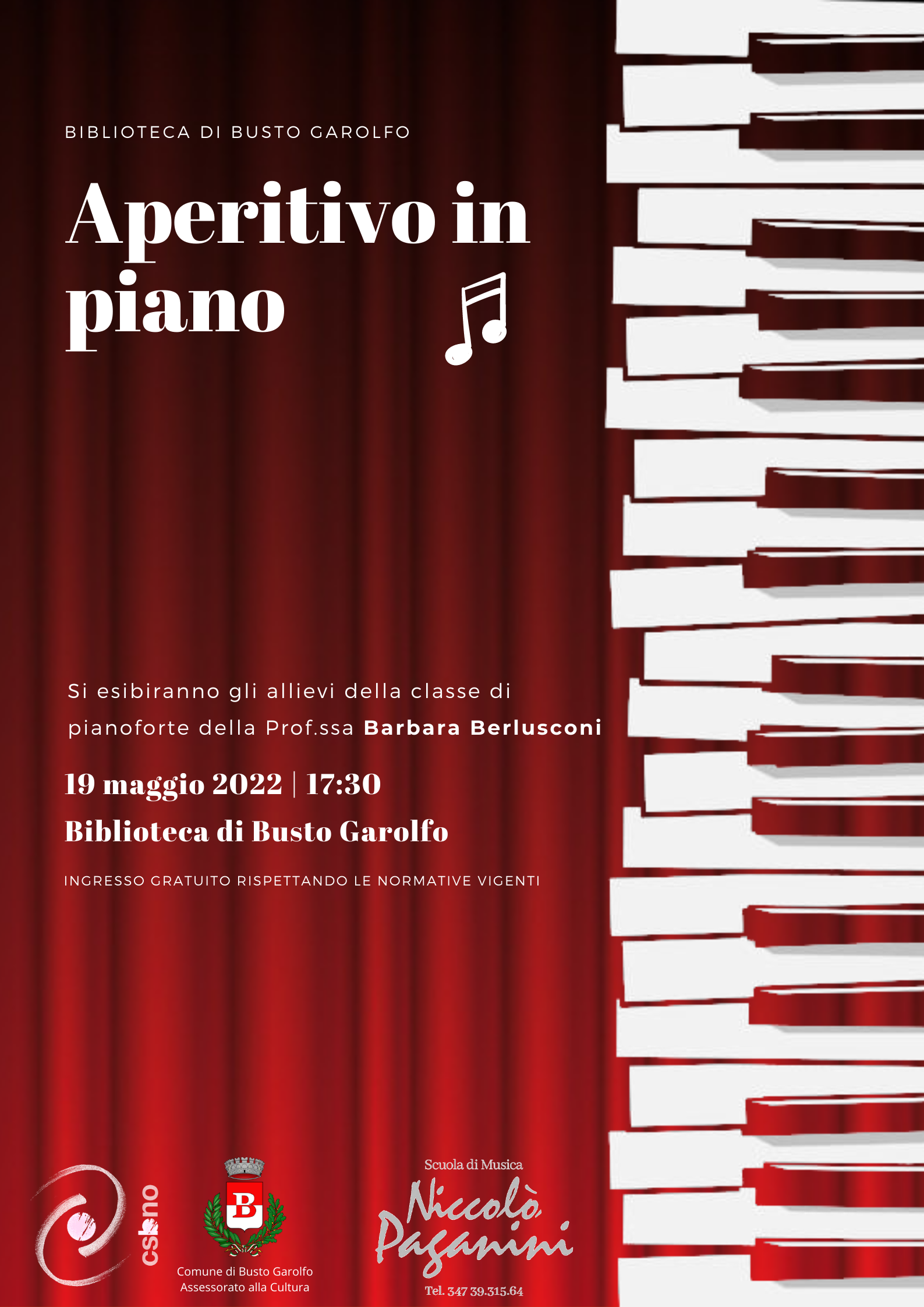 Si esibiranno gli allievi della classe di pianoforte della Prof.ssa Barbara Berlusconi, insegnante presso la Scuola di Musica Niccolò Paganini.