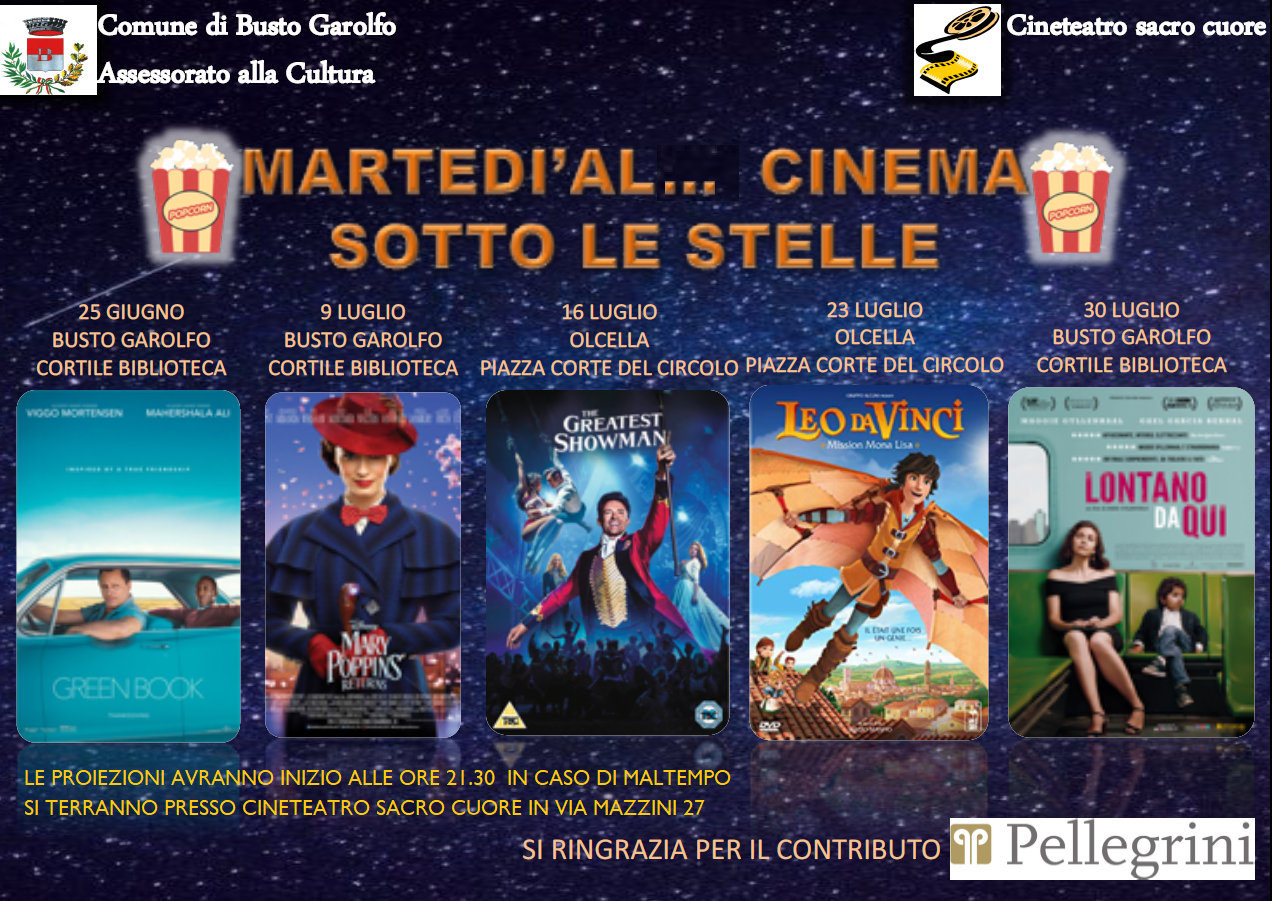 Primo appuntamento della rassegna "Martedì al ... Cinema sotto le Stelle". Alle ore 21.30 nel cortile della Biblioteca in via Magenta, 25. In caso di maltempo, la proiezione si svolgerà presso la Sala della Comunità, Oratorio via Mazzini, 27. Ingresso gratuito.