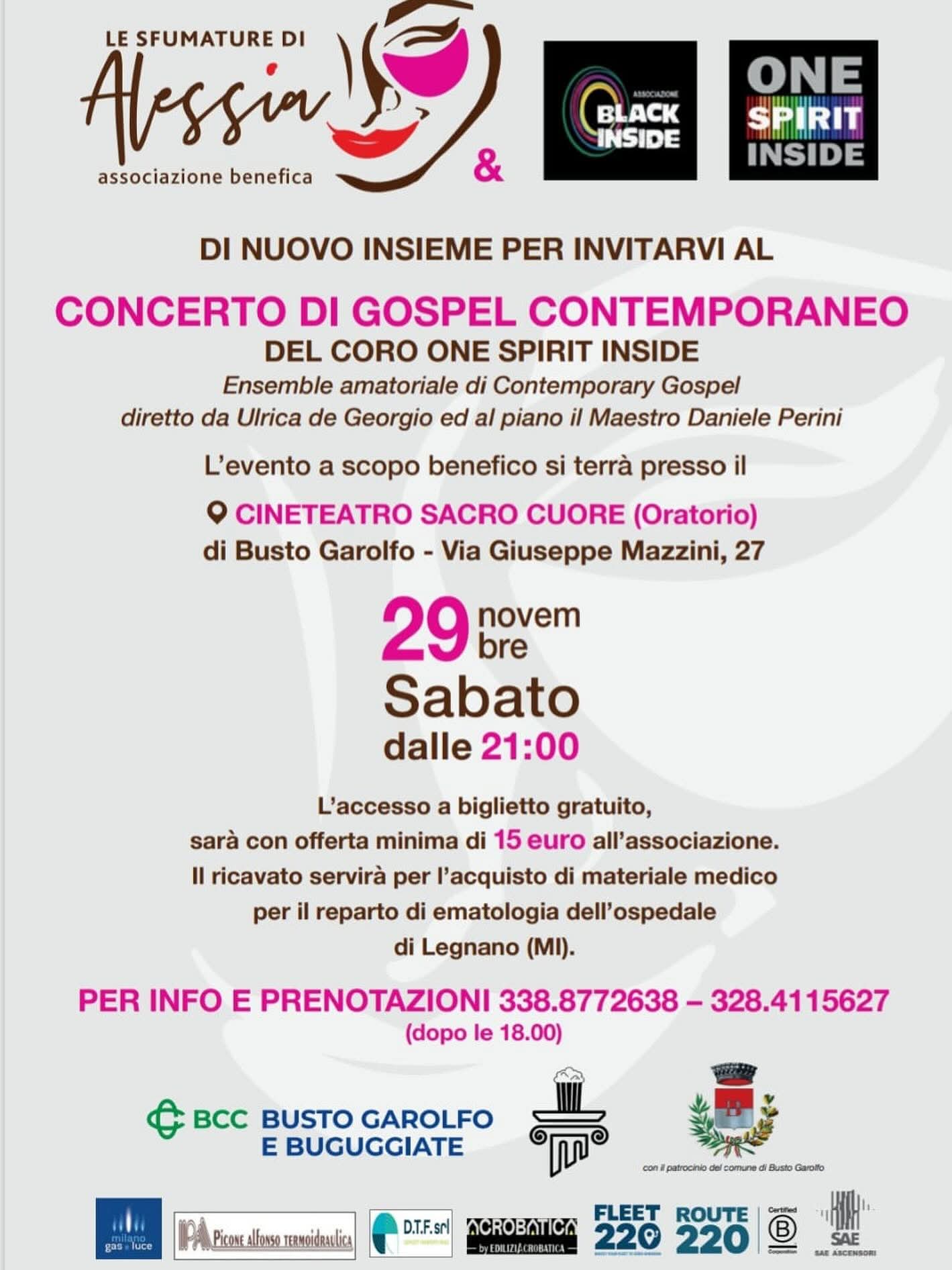 Concerto del Coro One Spirit Inside, ensemble amatoriale di Contemporary Gospel diretto da Ulrica de Georgio. Al pianoforte maestro Daniele Perini.