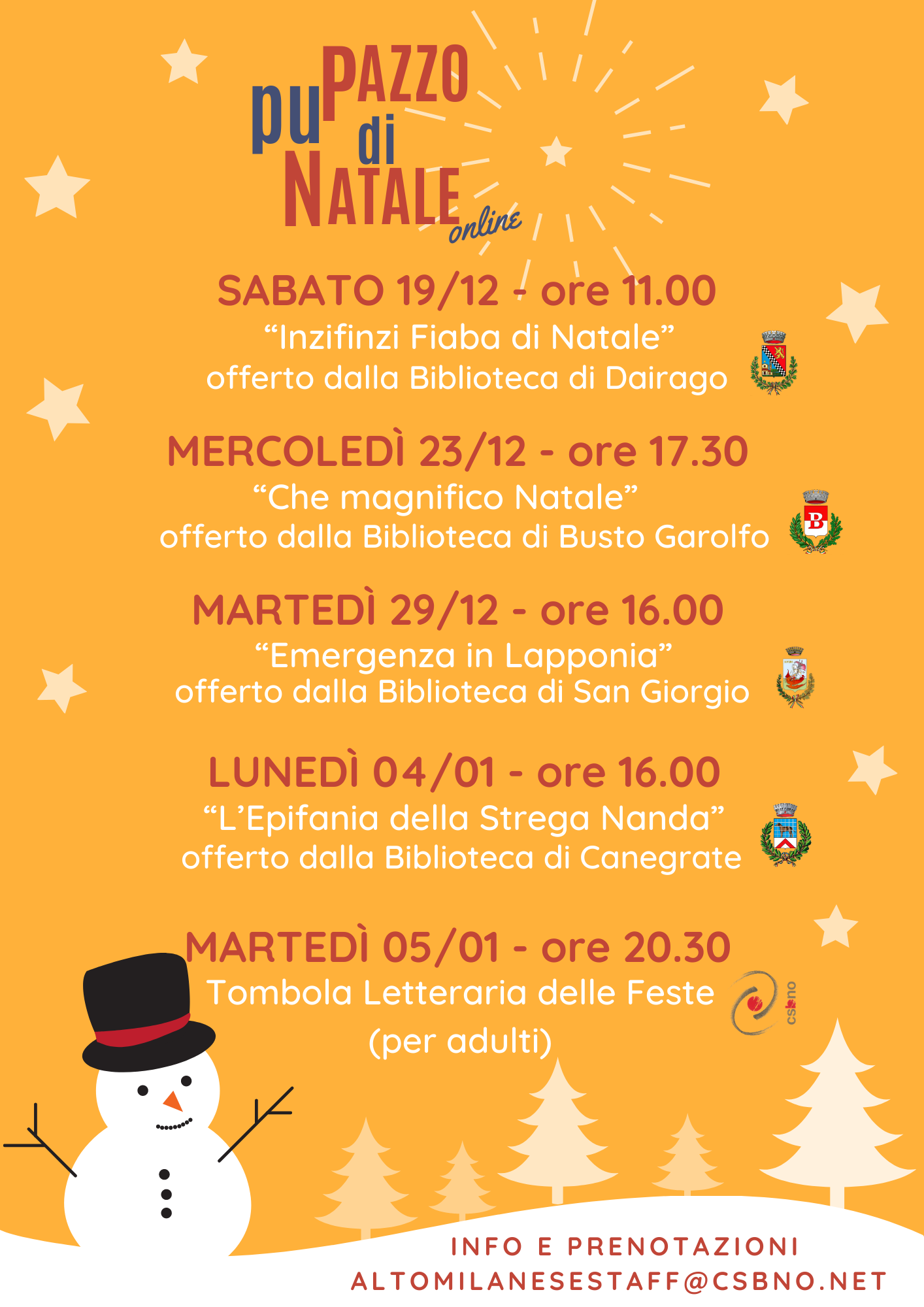 Evento proposto all'interno del palinsesto di appuntamenti offerti dalle biblioteche dell'Altomilanese "PuPazzo di Natale online". Ore 16.00.