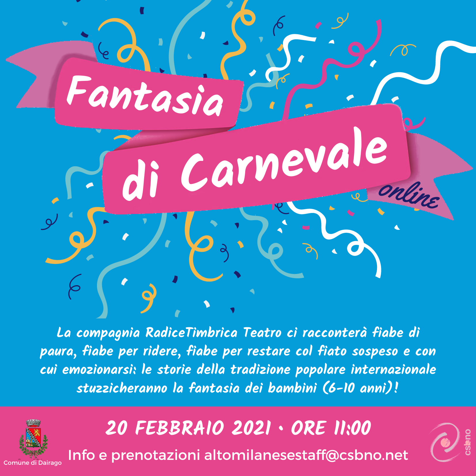 Nel calendario eventi delle Biblioteche dell’Altomilanese, si festeggerà Carnevale con lo spettacolo on line offerto dalla Biblioteca di Dairago.