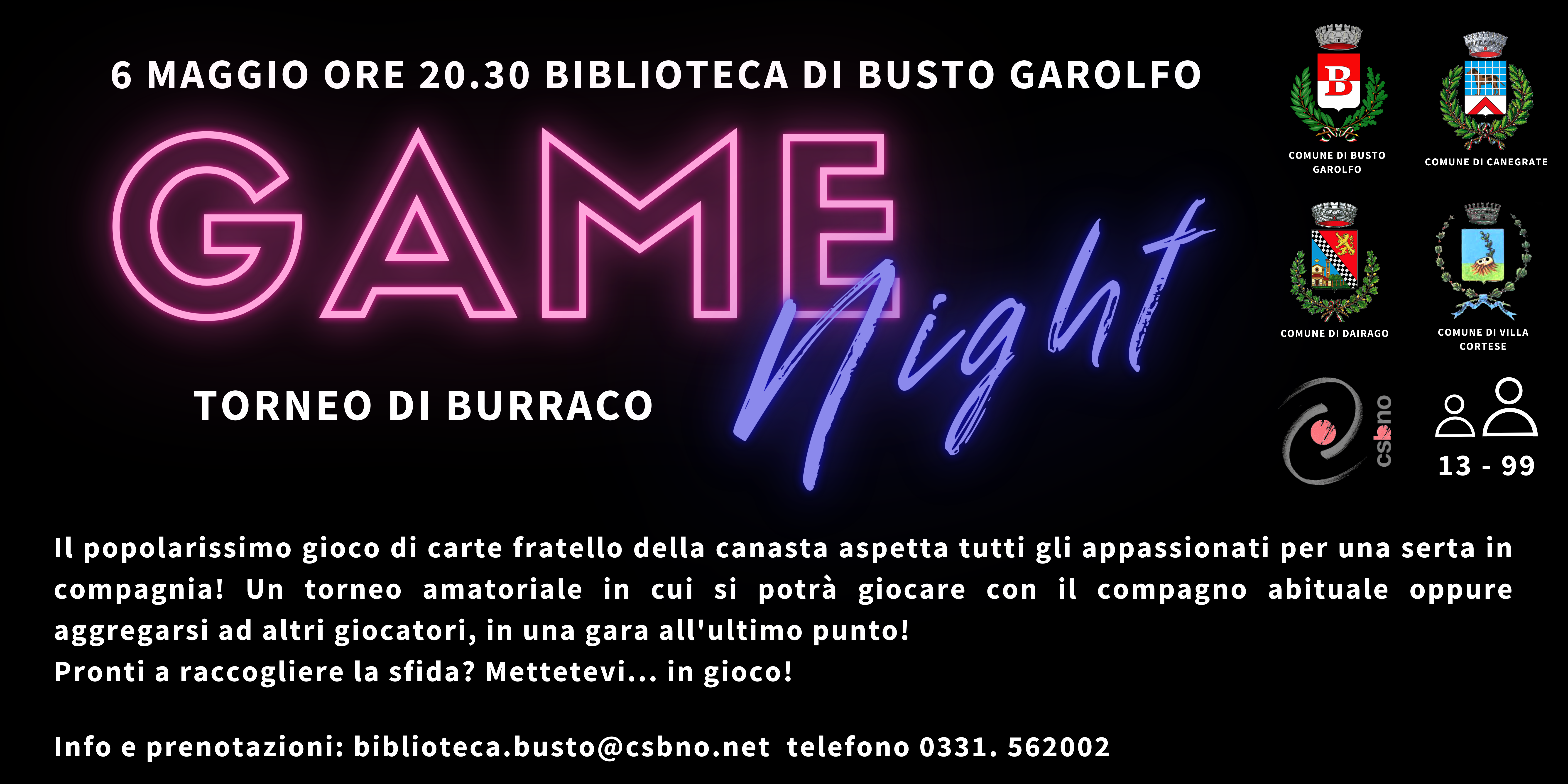 Quinto appuntamento del ciclo Game Night, questa volta presso la Biblioteca di Busto Garolfo con un avvincente torneo di burraco