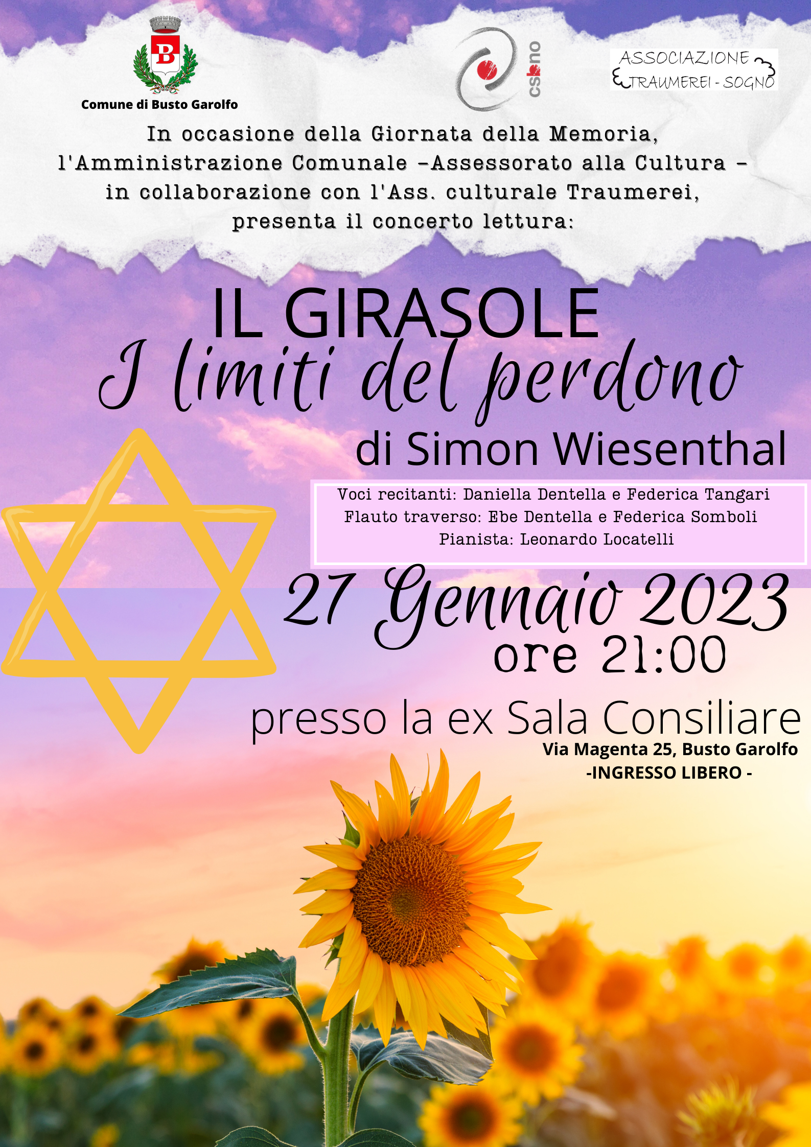 In occasione della Giornata della Memoria, l'Amministrazione Comunale - Assessorato alla Cultura - in collaborazione con l'Associazione Culturale Traumerei presenta il concerto lettura "Il Girasole. I limiti del perdono" di Simon Wiesenthal.