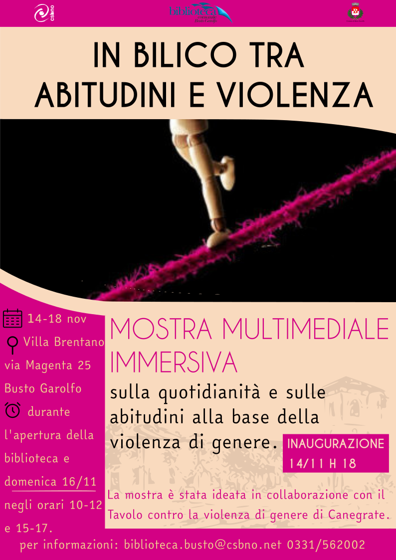 In vista della "Giornata Internazionale per l'eliminazione della violenza contro le donne" è allestita la mostra multimediale "In bilico tra abitudini e violenza", presso lo Spazio Espositivo di Villa Brentano.