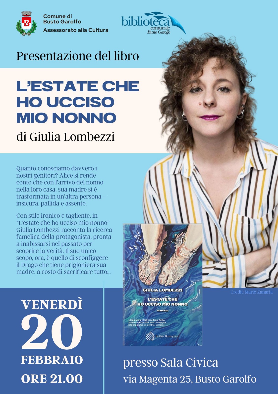 L'incontro con l'autrice si svolgerà presso la Sala Civica, via Magenta n. 25 - Busto Garolfo.