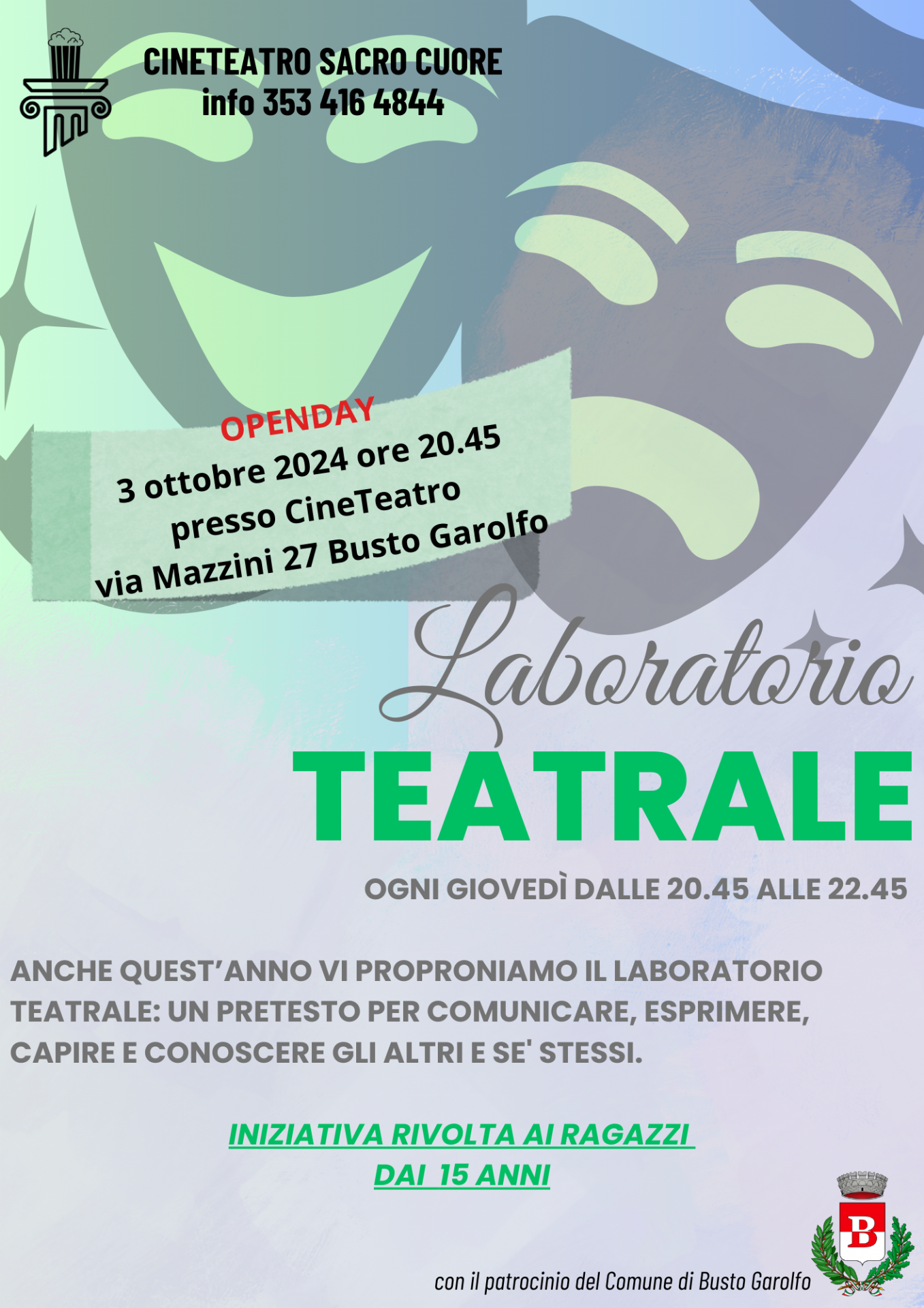 Anche quest'anno il Cineteatro Sacro Cuore organizza il Laboratorio Teatrale: un pretesto per comunicare, esprimere, capire e conoscere gli altri e se stessi.