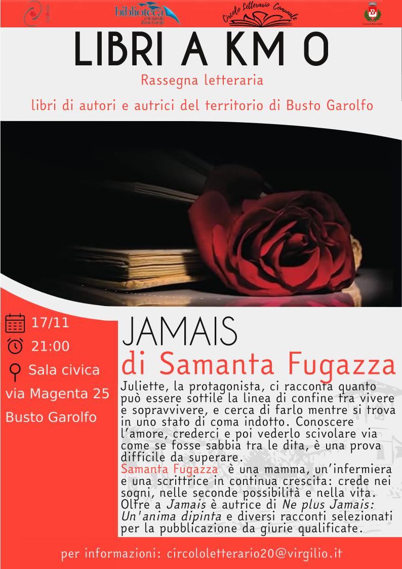 Presentazione del libro "Ne plus jamais" di Samanta Fugazza, nell'ambito della rassegna letteraria che presenta libri di autori e autrici del territorio di Busto Garolfo, organizzata dalla Biblioteca e dal Circolo Letterario Comunale.