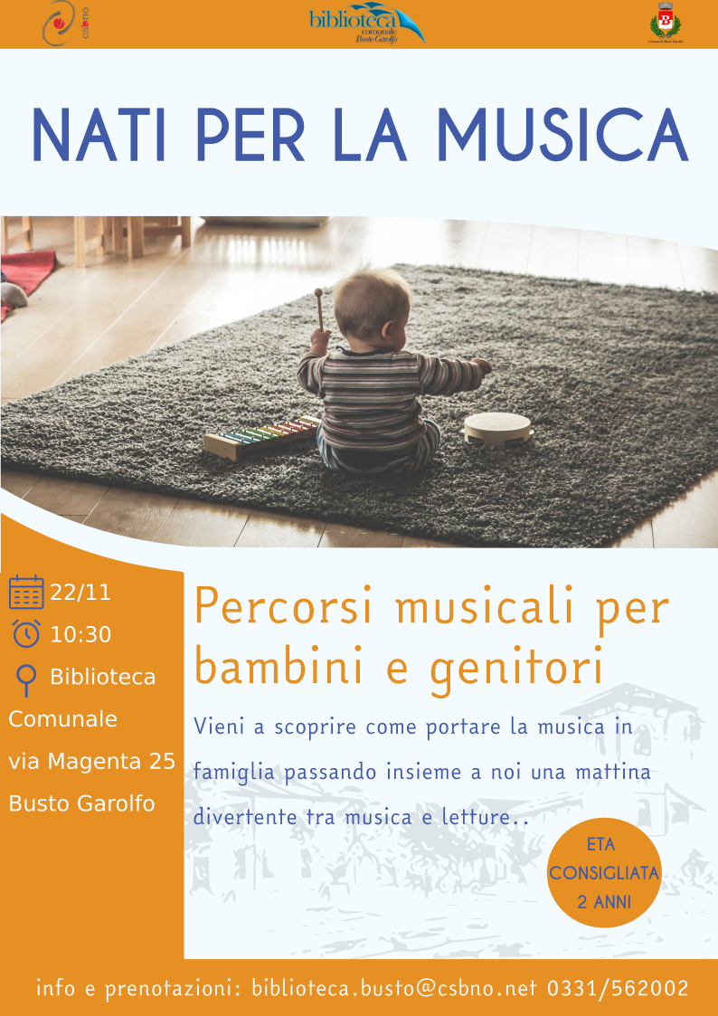 Vieni a scoprire come portare la musica in famiglia passando insieme a noi una mattina divertente tra musica e letture. Ore 10.30 presso la Biblioteca comunale.