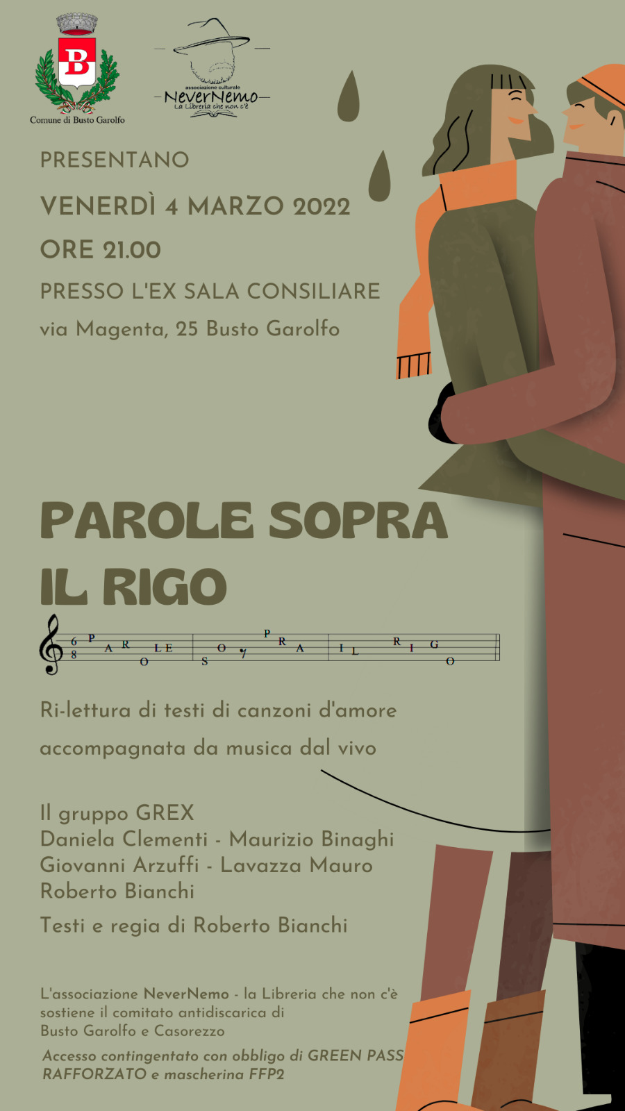 Ri-lettura di testi di canzoni d'amore accompagnata da musica dal vivo, eseguita dal Gruppo Grex: