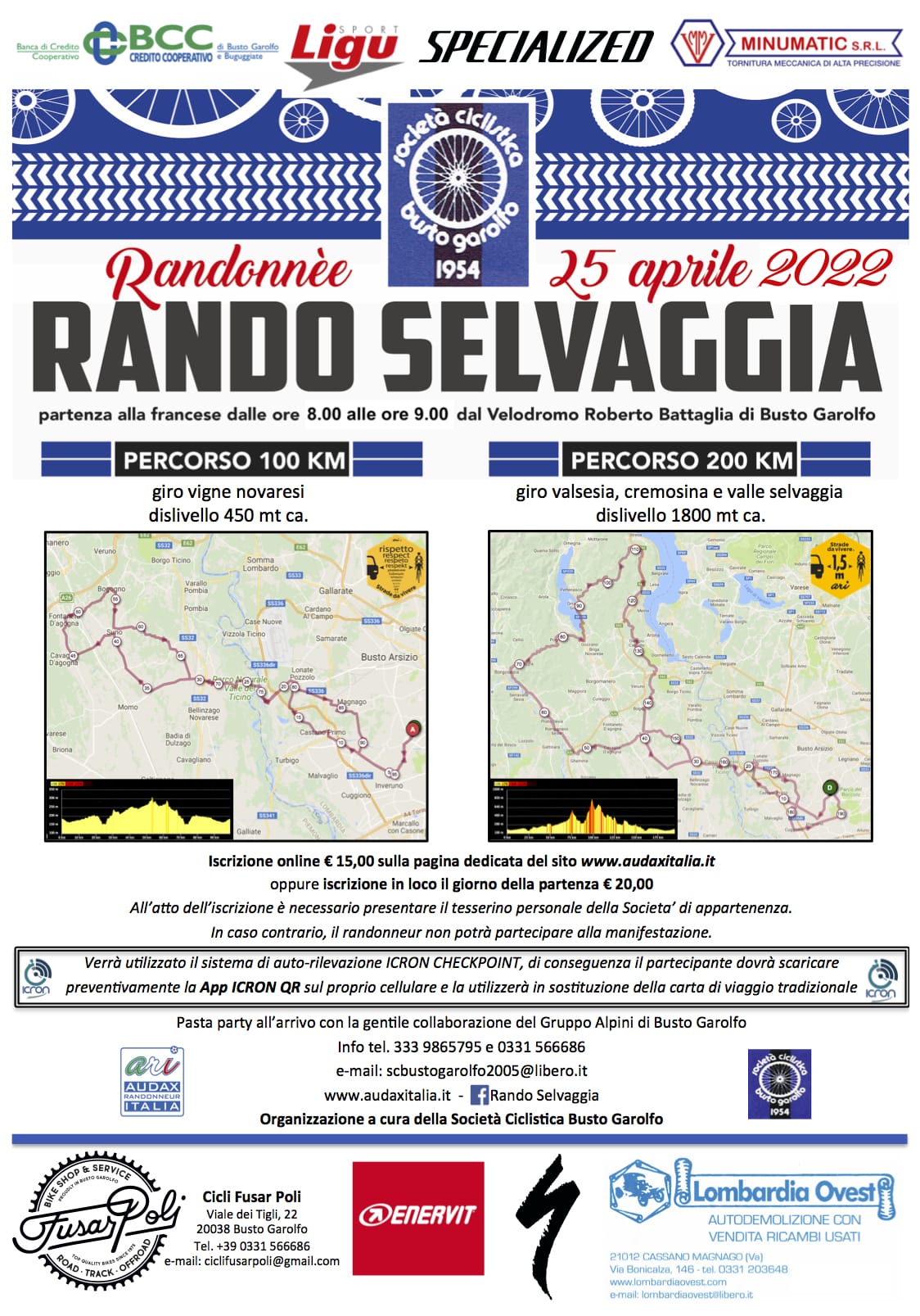 Rando Selvaggia - Randonnèe VI edizione che si svolgerà 25 Aprile 2022 con partenza alla francese dalle ore 8.00 alle 9.00 dal Velodromo Comunale "Roberto Battaglia"