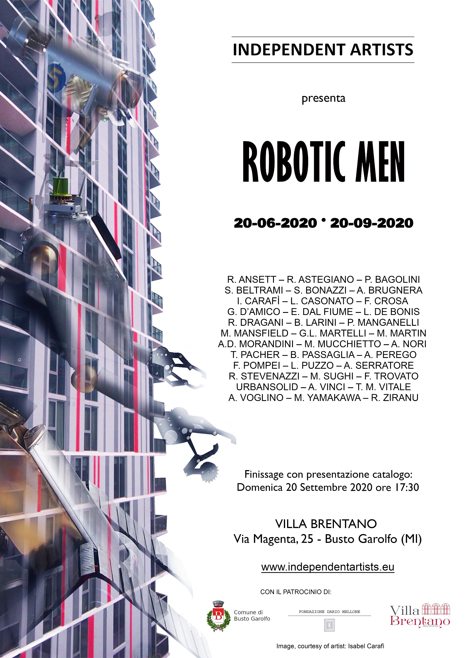 Domenica 20 settembre, dalle ore 16:00 alle ore 17:00, sarà possibile visitare gratuitamente, su prenotazione, le sale del Museo Mellone, presso Villa Rescalli Villoresi, fulcro del legame diretto tra il lavoro del Maestro Mellone e la tematica analizzata dagli artisti di Robotic Men. A seguire, intorno alle ore 17:30, presso Villa Brentano si terrà poi la presentazione del Catalogo e la chiusura della Mostra.