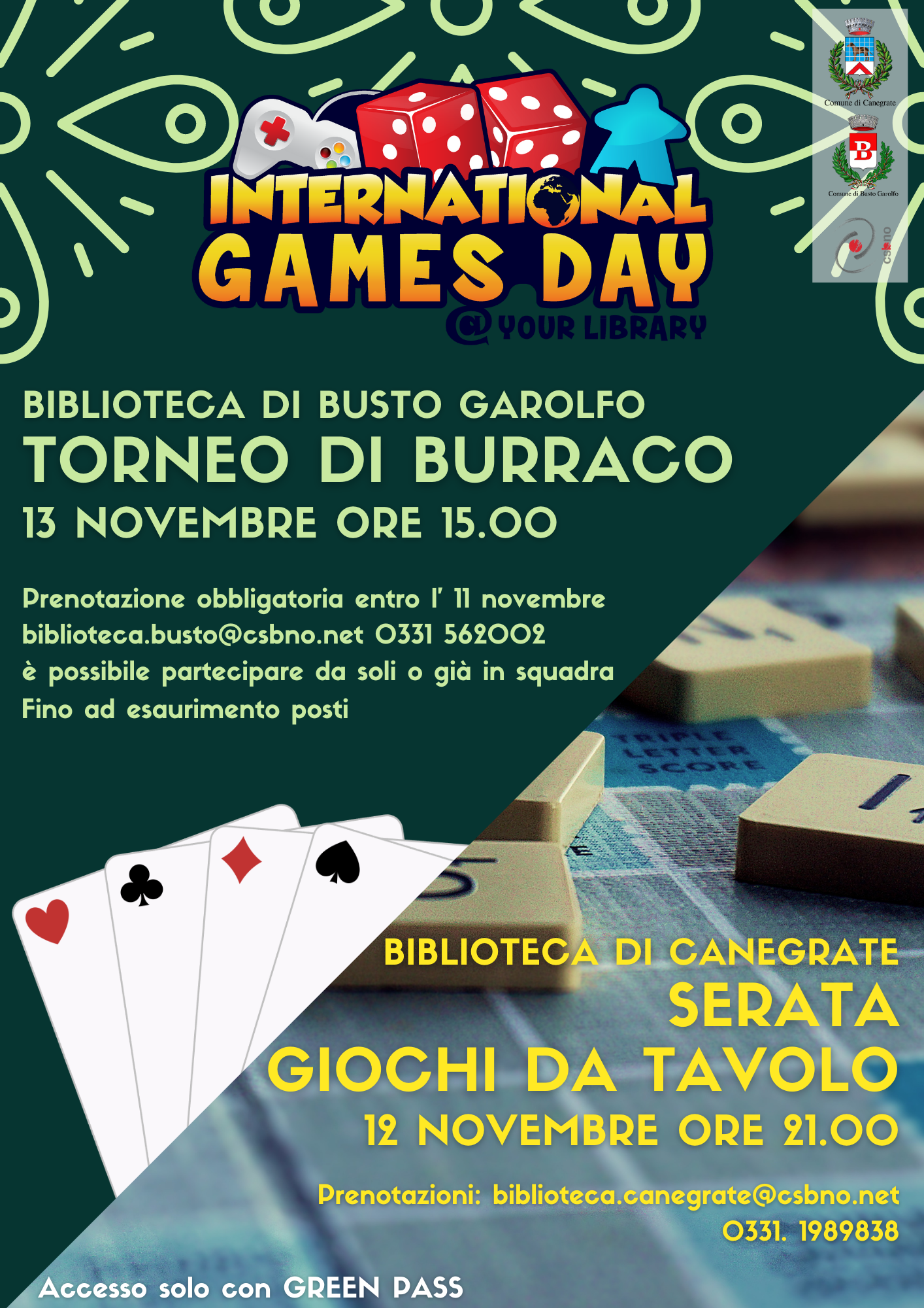 In occasione dell'International Games Day, la Biblioteca di Busto Garolfo organizza un Torneo di Burraco, nella giornata di sabato 13 novembre alle ore 15.00.