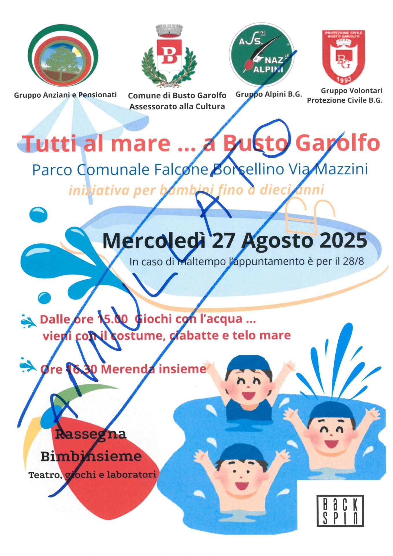 L'Assessorato alla Cultura del Comune di Busto Garolfo, nell'ambito della Rassegna Bimbinsieme, propone l'iniziativa "Tutti al mare .... a Busto Garolfo" per bambini fino a 10 anni.